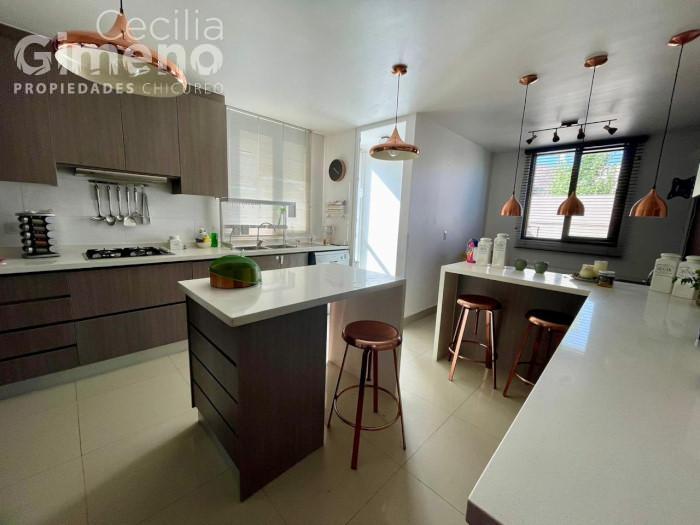 - cocina con mueble isla, comedor de diario, equipada con encimera a gas-campana-horno eléctrico