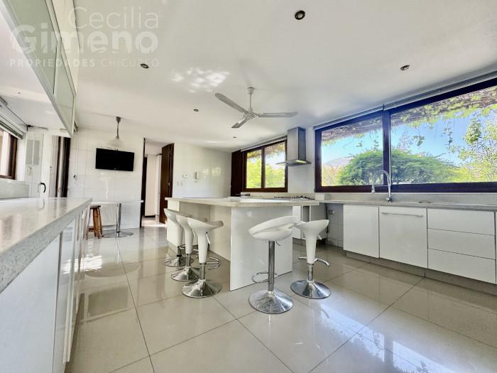 - cocina con mueble isla, equipada con encimera de inducción y a gas, 2 hornos, campana, despensa