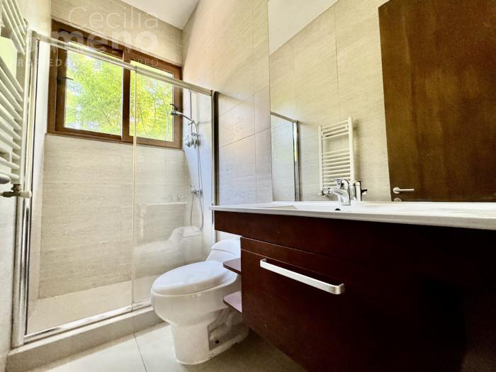 - amplio living en desnivel con chimenea y salida a la terraza, comedor separado con vista a pileta de agua, ambos con piso de madera
