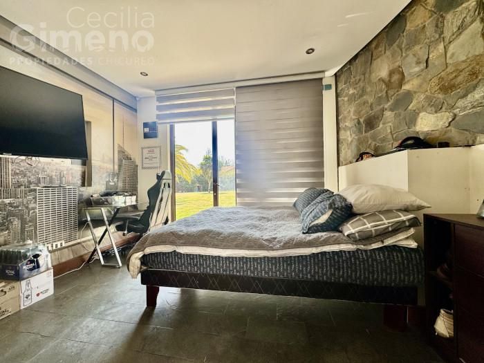 - dormitorio principal con baño en suite, walk in closet y salida al jardín