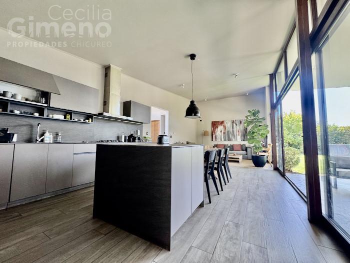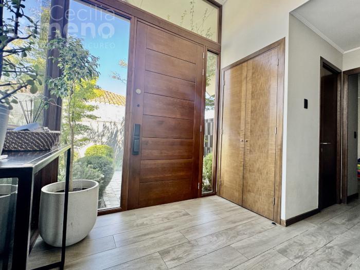 Casa no perimetral, estilo Neochilena en condominio con seguridad las 24 hrs, áreas verdes, a pasos de colegios y comercio en sector de Piedra Roja.