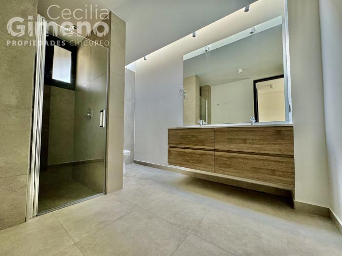 - dormitorio principal con baño en suite con shower door y walk in closet