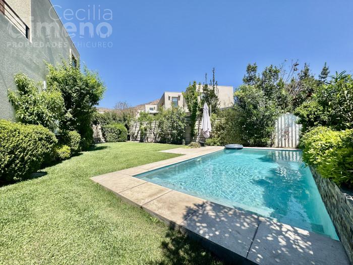 Casa mediterránea en condominio con acceso controlado las 24 hrs, cercano a comercio, colegios y autopistas.