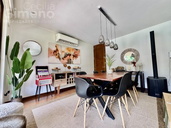 - living-comedor con piso de madera y salida a la terraza