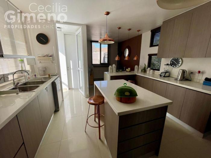 - cocina con mueble isla, comedor de diario, equipada con encimera a gas-campana-horno eléctrico