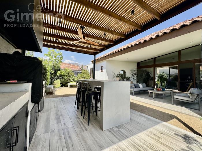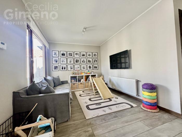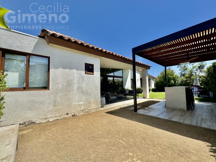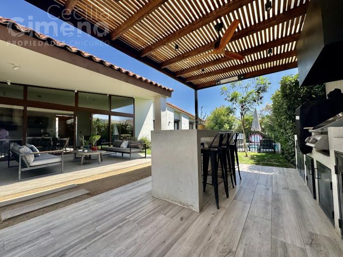 Casa no perimetral, estilo Neochilena en condominio con seguridad las 24 hrs, áreas verdes, a pasos de colegios y comercio en sector de Piedra Roja.